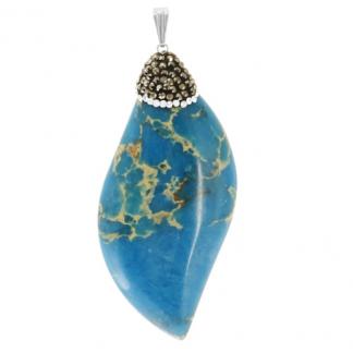 STAINLESS STEEL PENDANT OF STONE TURQUOISE IN DROP SHAPE WITH CRISTAL WHITE AND BLACK ALL IN IPG COLOR