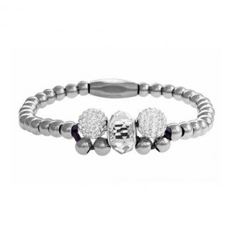 STAINLESS STEEL BRACELET WITH S/S BEADS CHAIN WITH 2 CZ BALLS WITH BLUE CRYSTAL