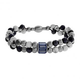 STAINLESS STEEL BRACELET WITH WHITE BEADS & S/S BEADS CRYSTAL BEADS 3 PATTERN WITH ROUND CRYSTAL PENDANT