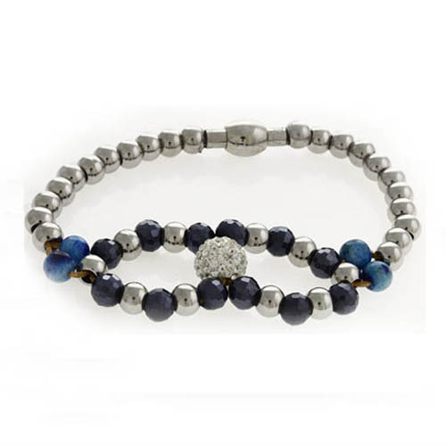 STAINLESS STEEL BRACELET WITH S/S BEADS CHAIN WITH 2 CRYSTAL & S/S BEADS LINES WITH CZ BALLS