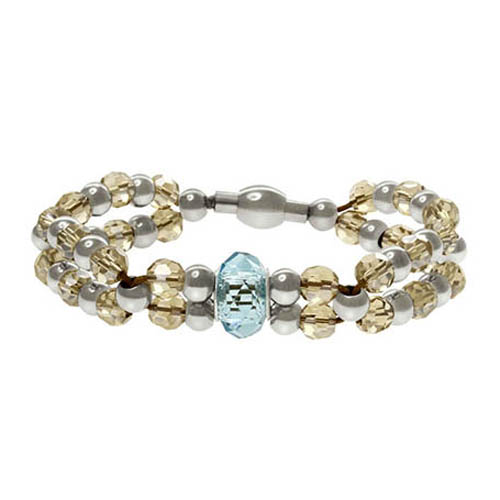 STAINLESS STEEL BRACELET WITH S/S BEADS & YELLOW CRYSTAL BEADS WITH BLUE CRYSTAL WITH S/S MAGNET LOCK