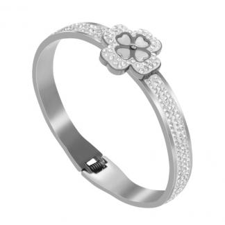 STAINLESS STEEL BANGLE IN S/S COLOR & CRYSTAL WITH 1 FLOWER WHITE IN THE CENTER