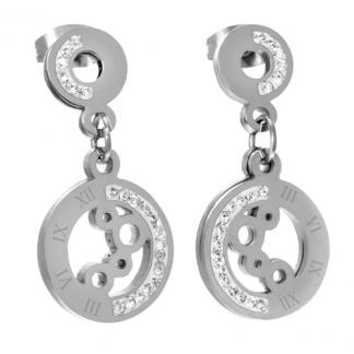 STAINLESS STEEL EARRINGS ALL IN IPG COLOR IN TWO CIRCLES SHAPES WITH CRYSTAL ALL IN S/S COLOR.