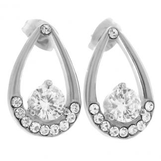 STAINLESS STEEL EARRINGS IN BEAD SHAPES WITH CRYSTAL ALL IN S/S COLOR.