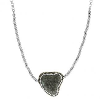 STAINLESS STEEL NECKLACE WITH PENDANT NATURAL STONE WITH CRYSTAL BLACK & BALLS IN S/S COLOR