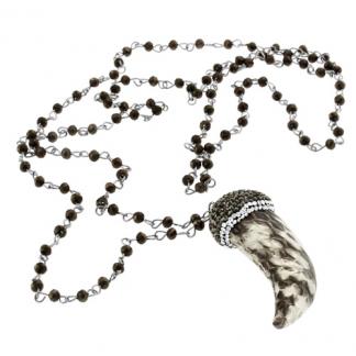 STAINLESS STEEL NECKLACE WITH A STONE IN SHAPE TUSK IN TWO TONE BLACK AND WHITE WITH CRYSTAL BLACK Y WHITE