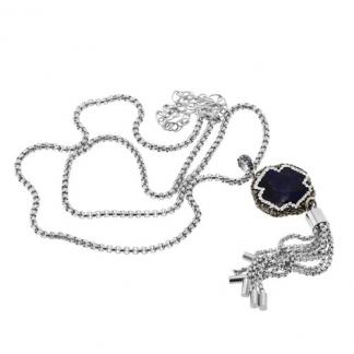 STAINLESS STEEL NECKLACE WITH THIN CHAIN IN CASCADE IN S/S COLOR AND A STONE BLACK WITH CRYSTAL WHITE Y BLACK.