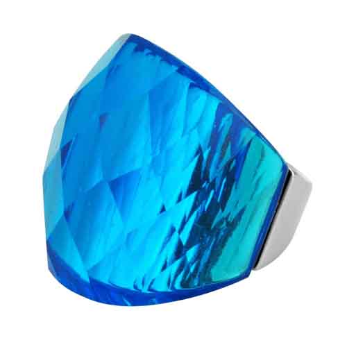 Stainless Steel Fashion Jewellery Ring With Big Blue Crystal All in Steel Color