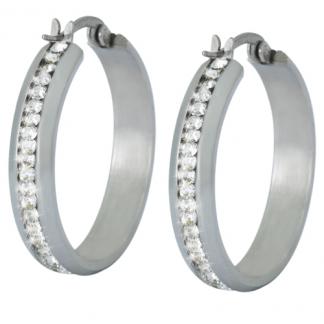 STAINLESS STEEL EARRING IN ROUND SHAPE WITH CZ AROUND ALL IN S/S COLOR