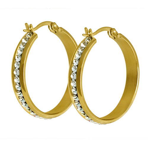 STAINLESS STEEL EARRING IN ROUND SHAPE WITH CZ AROUND ALL IN IPG