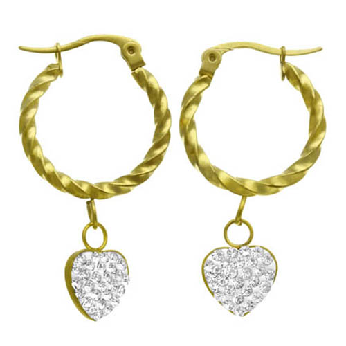 STAINLESS STEEL EARRINGS IN IPG COLOR WITH HEART CHARMS WITH CZ
