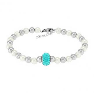 STAINLESS STEEL PEARL BRACELET WITH PEARL COLOR BEADS WITH S/S BEADS WITH STAINLESS STEEL PENDANT WITH CZ