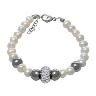 STAINLESS STEEL RIVER PEARLBRACELET WITH PEARL COLOR BEADS WITH 4 S/S BEADS WITH STAINLESS STEEL PENDANT WITH CZ