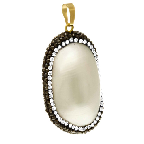 STAINLESS STEEL PENDANT OF PEARL WITH CRYSTAL BLACK AND WHITE AND BAIL IN IPG COLOR