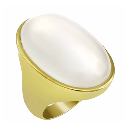 STAINLESS STEEL RING IN IPG WITHWHITE PEARL STONE