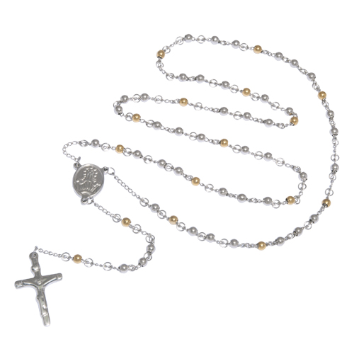 STAINLESS STEEL ROSARY WITH JESUS CROSS IN IPG 2 TONE