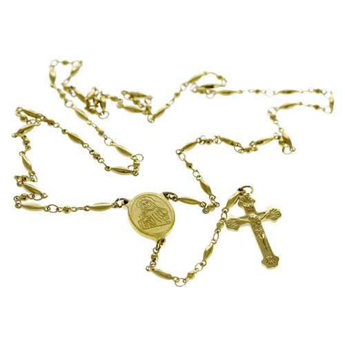| STAINLESS STEEL ROSARY NECKLACE WITH IPG COLOR WITH CROSS PENDANT WITH OVAL PENDANT IN IPG COLOR |