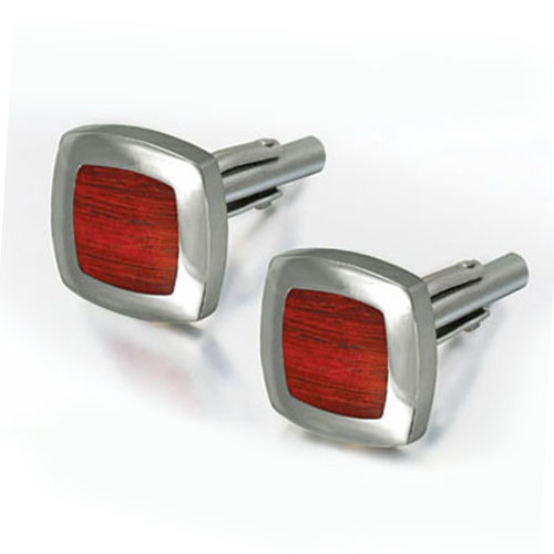 STAINLESS STEEL CUFF LINKWITH BROWN WOOD IN S/S COLOR