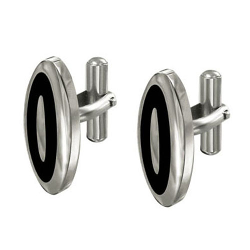 STAINLESS STEEL CUFF LINK WITH BLACK ENAMEL IN S/S COLOR