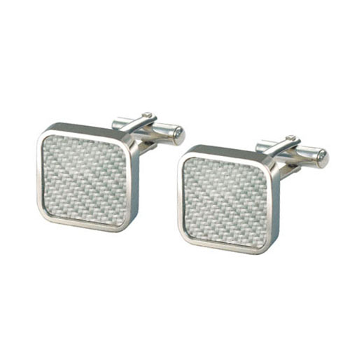 STAINLESS STEEL CUFF LINK WITH WHITE CARBON FIBERIN S/S COLOR