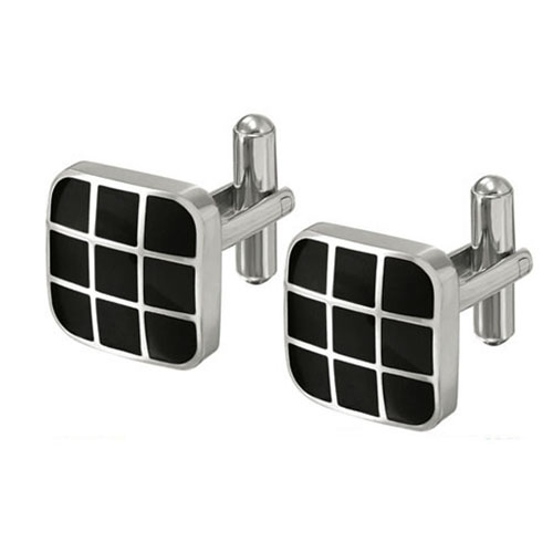 STAINLESS STEEL CUFF LINK IN SQUARE SHAPEWITH BLACK ENAMEL ALL IN S/S COLOR