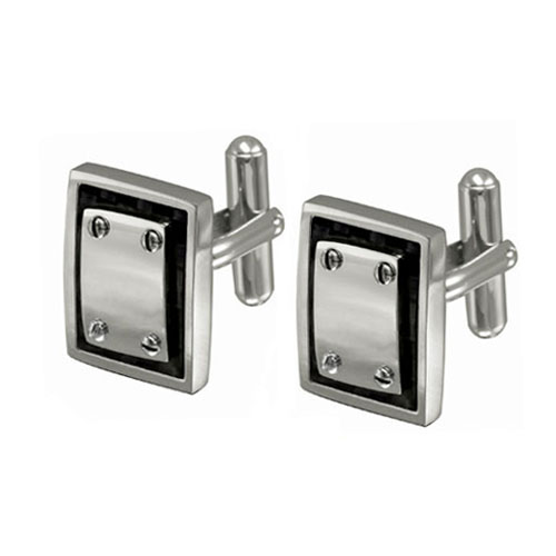 STAINLESS STEEL CUFF LINK IN RECTANGULAR SHAPE BLACK CARBON FIBRE WITH 4 SCREWS