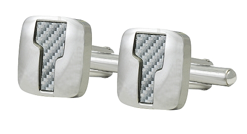 STAINLESS STEEL CUFF LINK IN RECTANGULAR SHAPE WITH WHITE CARBON FIBER ALL IN S/S COLOR