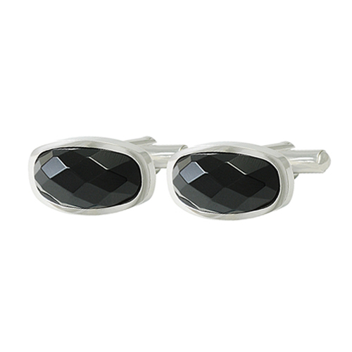 STAINLESS STEEL CUFF LINK IN OVAL SHAPE WITH BLACK STONE IN S/S COLOR