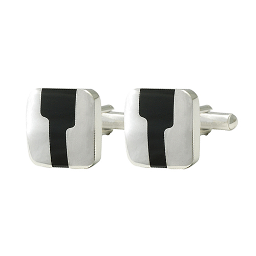 STAINLESS STEEL CUFF LINK IN SQUARE SHAPE WITH BLACK ENAMEL IN S/S COLOR