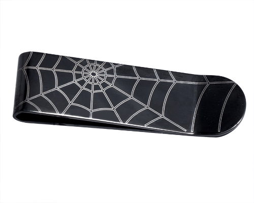 STAINLESS STEEL TIE CLIP IN IP BLACK COLOR WITH SPIDER WEB PATTERN