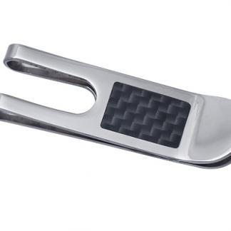 STAINLESS STEEL TIE CLIP WITH BLACK CARBON FIBRE IN S/S COLOR