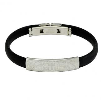 STAINLESS STEEL BANGLE PU WITH CENTRE PLATE WITH CROSS & BIBLE VERSE (PADRE NUESTRO)
