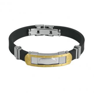 STAINLESS STEEL BANGLE WITH EYE PATTERN 2 TONE IN IP GOLD AND STEEL COLORS AND WITH PU