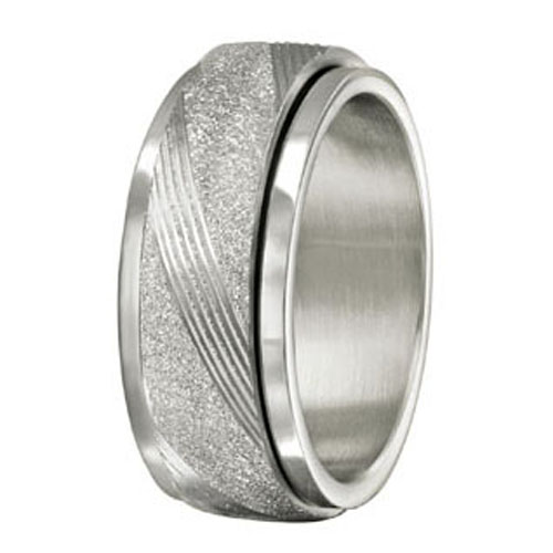 STAINLESS STEEL FASHION JEWELLERY RING WITH DIAMOND CUT WITH SANDBLAST ALL IN STEEL COLOR