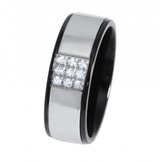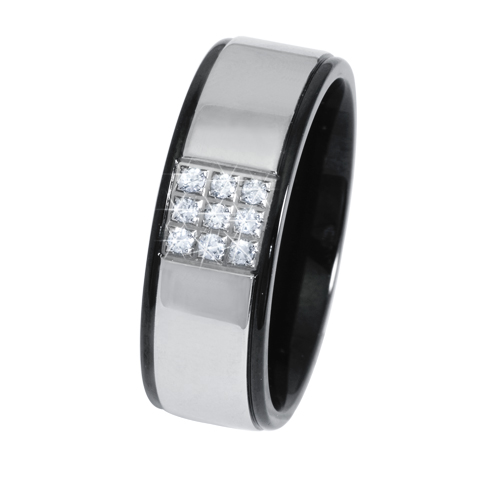 STAINLESS STEEL FASHION JEWELLERY RING WITH CZ IN IPB TWO TONE