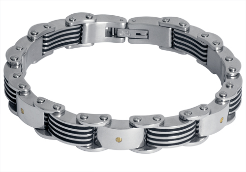 STAINLESS STEEL BRACELET WITH IPG & BLACK ENAMEL