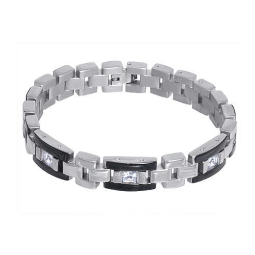 STAINLESS STEEL BRACELET IN IPB 2 TONE WITH 3 CZ