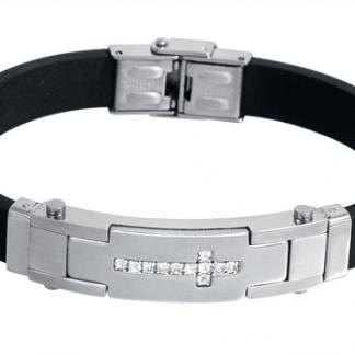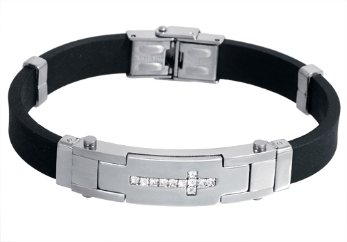 STAINLESS STEEL BRACELET POLISH & SATIN WITH CZ LINED IN CROSS SHAPE ALL IN STEEL COLOR