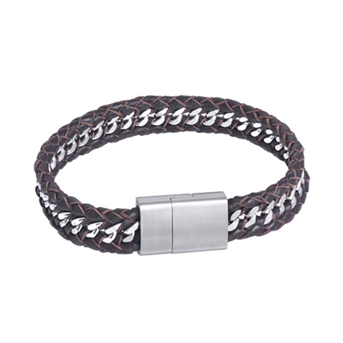 STAINLESS STEEL BRACELET WITH BROWN LEATHER WITH MAGNET LOCK