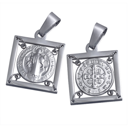 STAINLESS STEEL PENDANT IN SQUARE SHAPE WITH SAN BENITO ALL IN STEEL COLOR