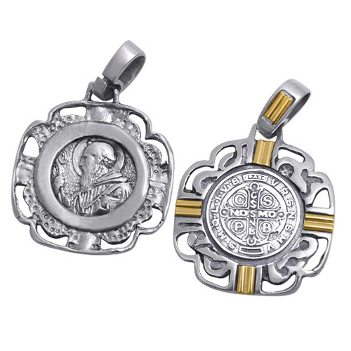 STAINLESS STEEL RELIGIOUS PENDANT WITH SAN BENITO (TWO SIDES DIFERENT) IN IPG TWO TONE