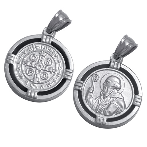 STAINLESS STEEL RELIGIOUS PENDANT WITH SAN BENITO (TWO SIDES DIFFERENT) WITH BLACK ENAMEL