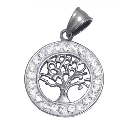 STAINLESS STEEL PENDANT WITH TREE OF LIFE WITH CZ ALL IN STEEL COLOR