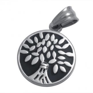 STAINLESS STEEL ROUND PENDNAT WITH TREE OF LIFE WITH BLACK ENAMEL