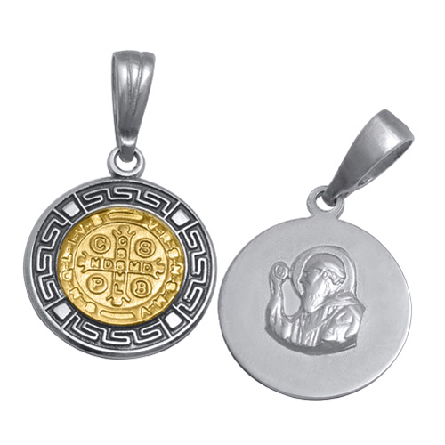 STAINLESS STEEL RELIGIOUS PENDANT WITH SAN BENITO (TWO SIDES DIFFERENT) IN IPG TWO TONE