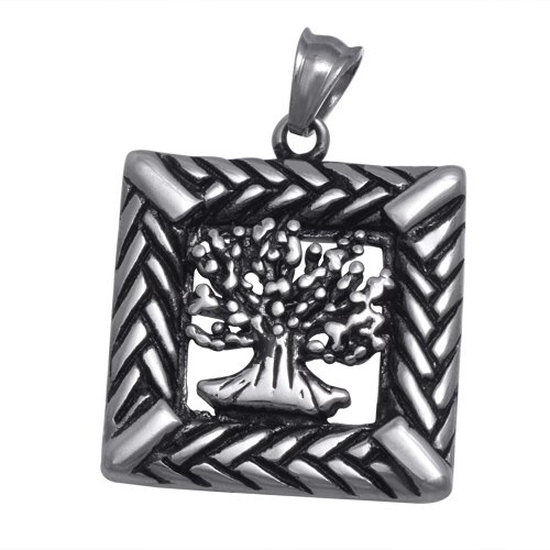 STAINLESS STEEL SQUARE PENDNAT WITH TREE OF LIFE WITH BLACK COLOR
