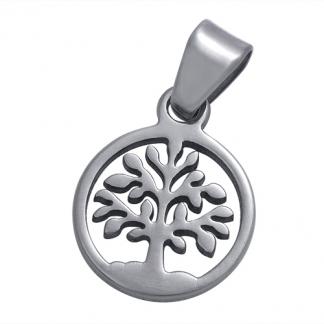 STAINLESS STEEL ROUND PENDANT WITH TREE OF LIFE ALL IN STEEL COLOR