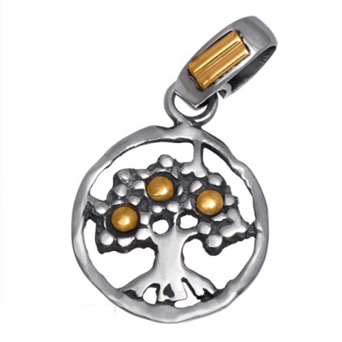 STAINLESS STEEL PENDANT WITH IRREGULAR EDGE WITH TREE OF LIFE IN IPG TWO TONE WITH BLACK COLOR