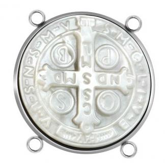 STAINLESS STEEL RELIGIOUS PENDANT ALL IN STEEL COLOR WITH SAN BENITO IN SHELL WITH FOUR HOLE AT THE EDGE