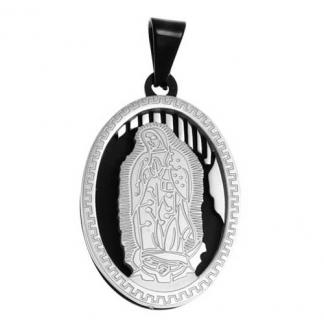 STAINLESS STEEL PENDANT IN OVAL SHAPE WITH GUADALUPE IN IPB TWO TONE